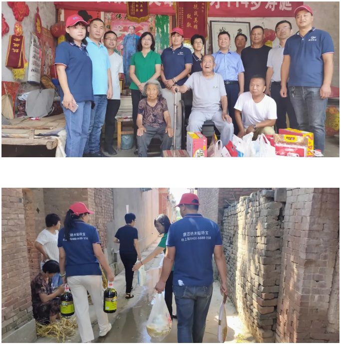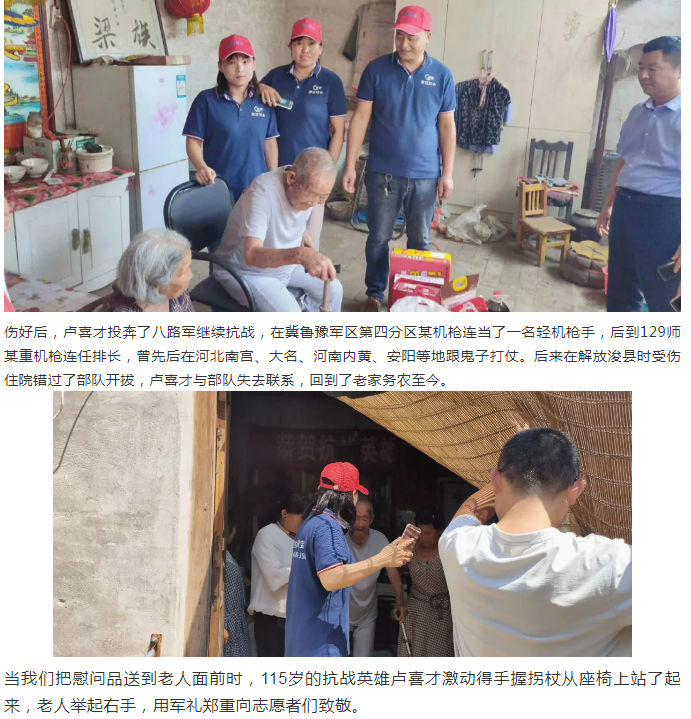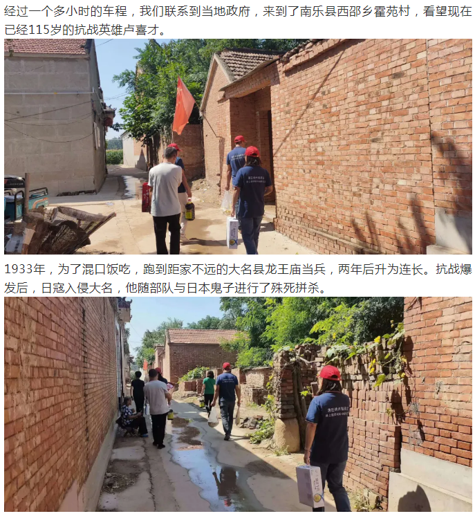 9月1日上午,唐匠防水公司員工陪同濮陽市及南樂縣領(lǐng)導(dǎo)前往南樂縣西邵鄉(xiāng)霍苑,去看望慰問抗戰(zhàn)老兵盧喜才。為他送去了米、面、油、豆奶、水果等生活用品。